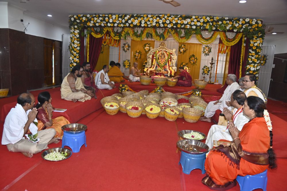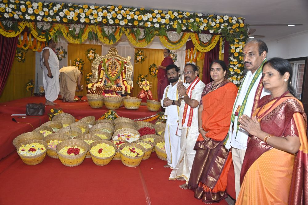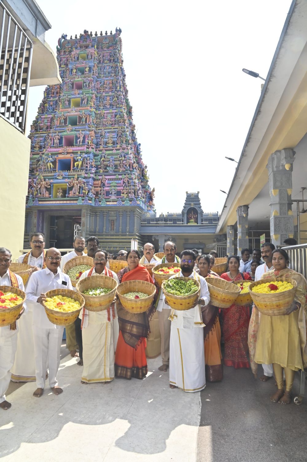 The temple premises were filled with devotion as special prayers and flower offerings were made to the goddess. The temple chairman Borra Radhakrishna (Gandhi), executive officer and special grade deputy collector V.K. Seena Naik, and trust board members participated and supervised the worship activities. The flower offering was performed with devotion and reverence for the goddess, utilizing various fragrant flowers including sampangi and chamanti.