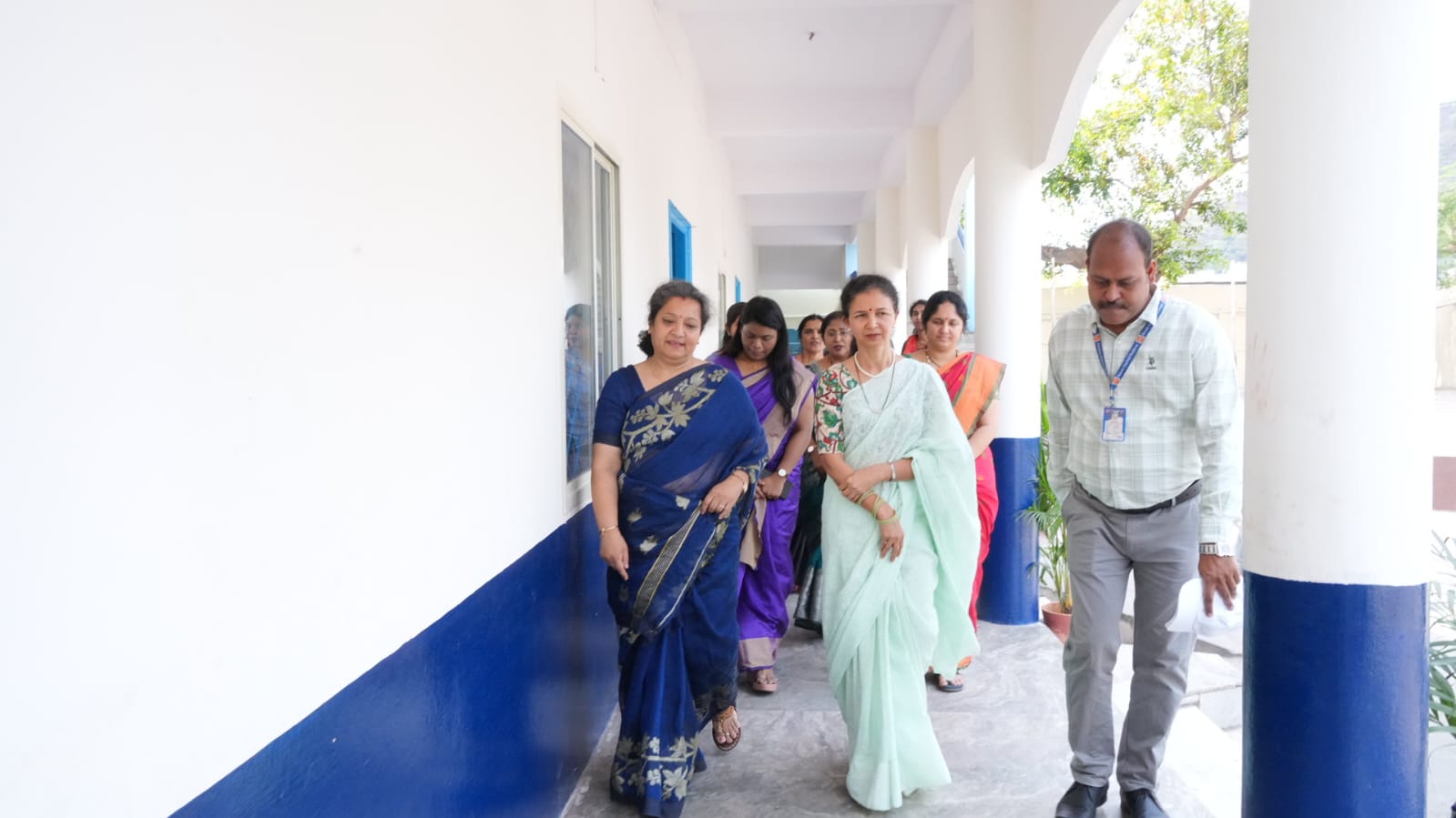 A key highlight of the visit was the inauguration of the renovated Jack & Jill (E.M.) School at Vijayawada. The programme was attended by Smt. Versha Sonakiya, President SCRWWO/Vijayawada Division, Smt. Konda Veena Chandana, Vice President SCRWWO/BZA, Smt. Niharika Maneri, Secretary SCRWWO/BZA, Smt. R. Pavitraa, Secretary of the school, and Smt. V. Sindhura Lakshmi, Treasurer SCRWWO/BZA. The renovation of the school reflects SCRWWO’s continued commitment to strengthening educational infrastructure and creating a safe, supportive, and inspiring environment for children. As part of the initiative, Smt. Vandana Srivastava also inaugurated a Safe Sanitary Disposal Unit to promote hygiene awareness and dignity among students.