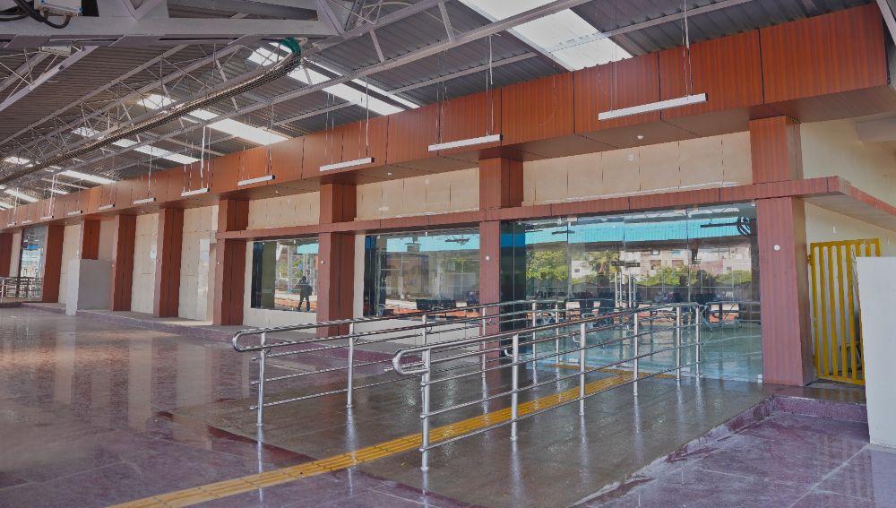 The station features a premium air-conditioned waiting hall, modular toilets, improved booking offices, stainless steel seating, and drinking water facilities.