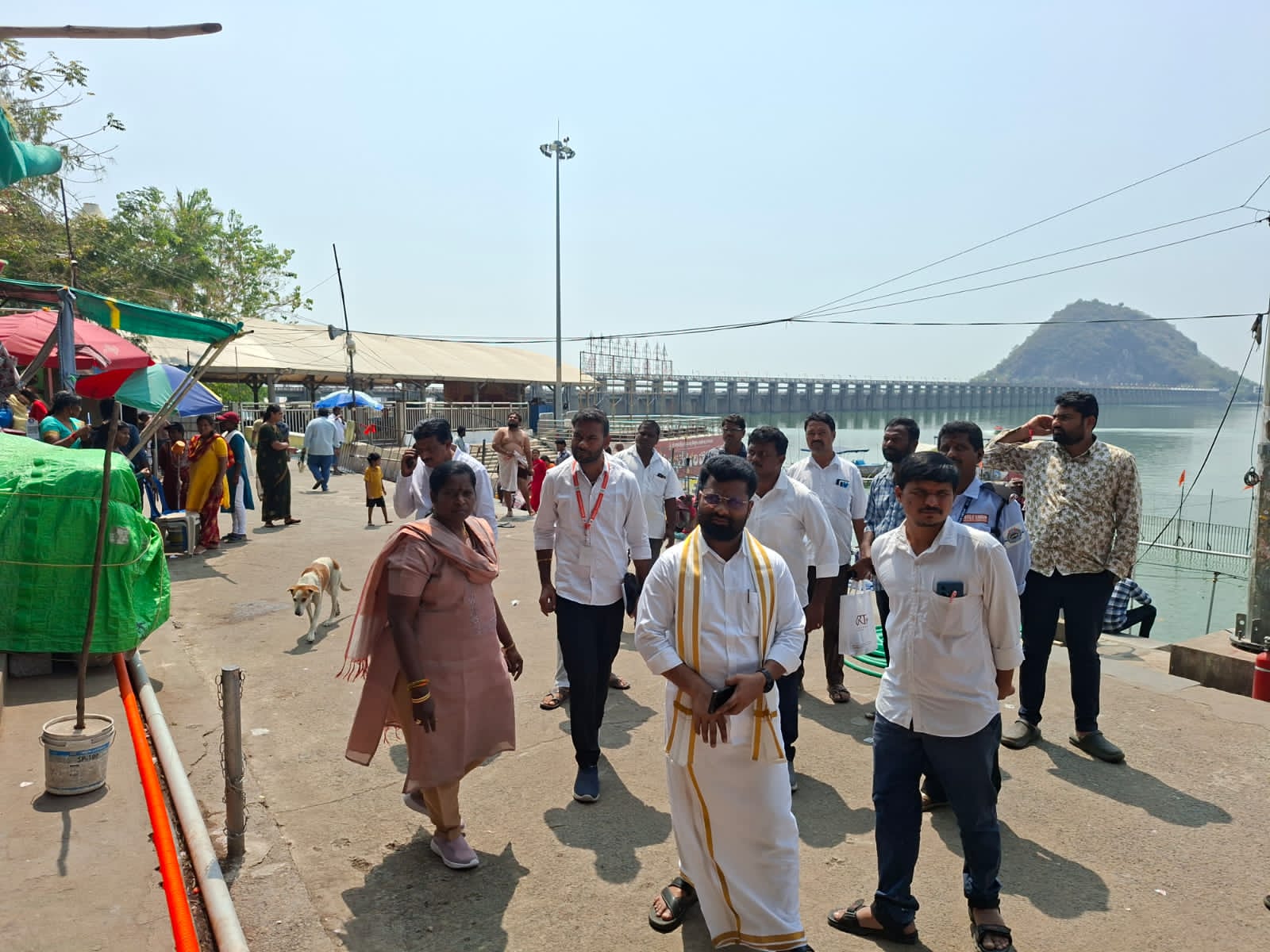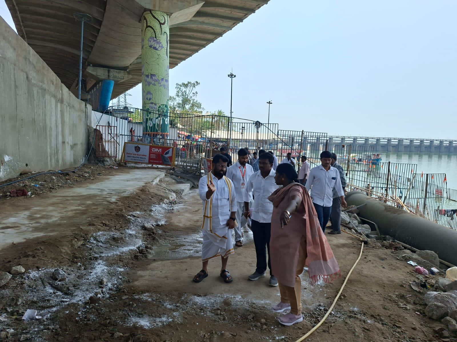 The special grade sub-collector (EO) Sinha Naik and executive engineer Ramadevi jointly inspected the surroundings of the ghat. Officials discussed the measures to be taken to manage the crowd of devotees effectively. Plans were formulated to improve the existing underground pathways and establish new routes to ensure that devotees performing holy baths in the Krishna River can easily reach the ghat. Officials suggested preparing new routes for going to and returning from the ghat to prevent congestion during peak times. Special attention was given to the minimum facilities and security arrangements required for devotees at the bathing ghats.