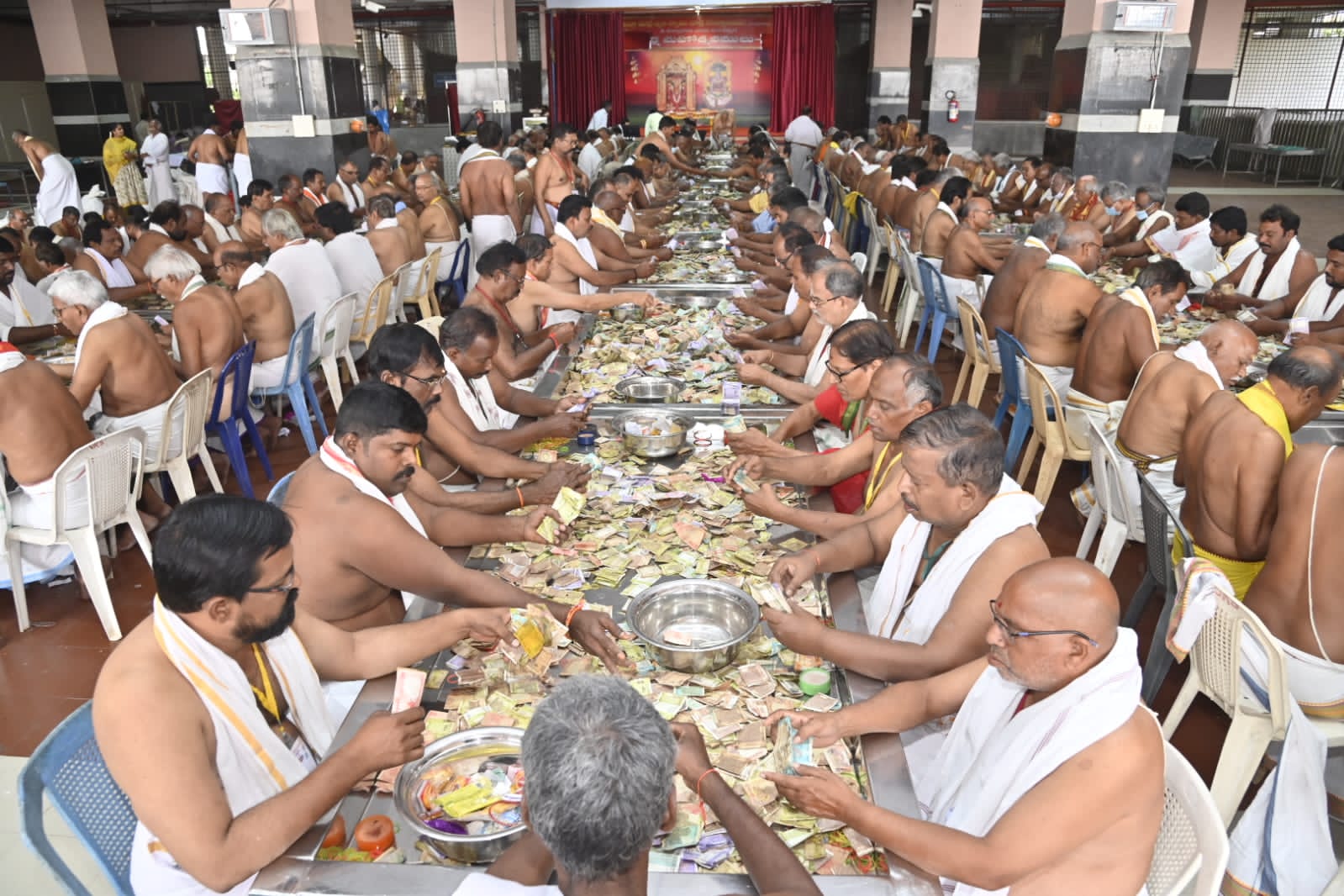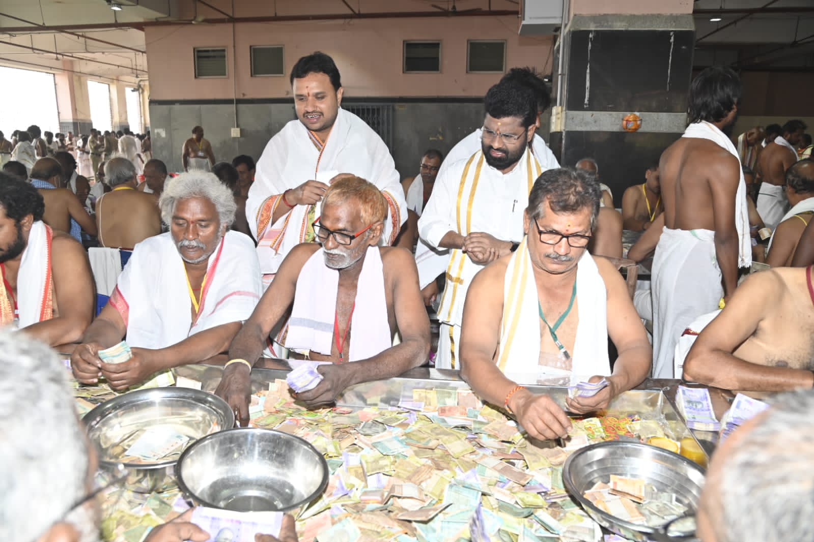 Temple officials and staff participated in this hundi counting program.