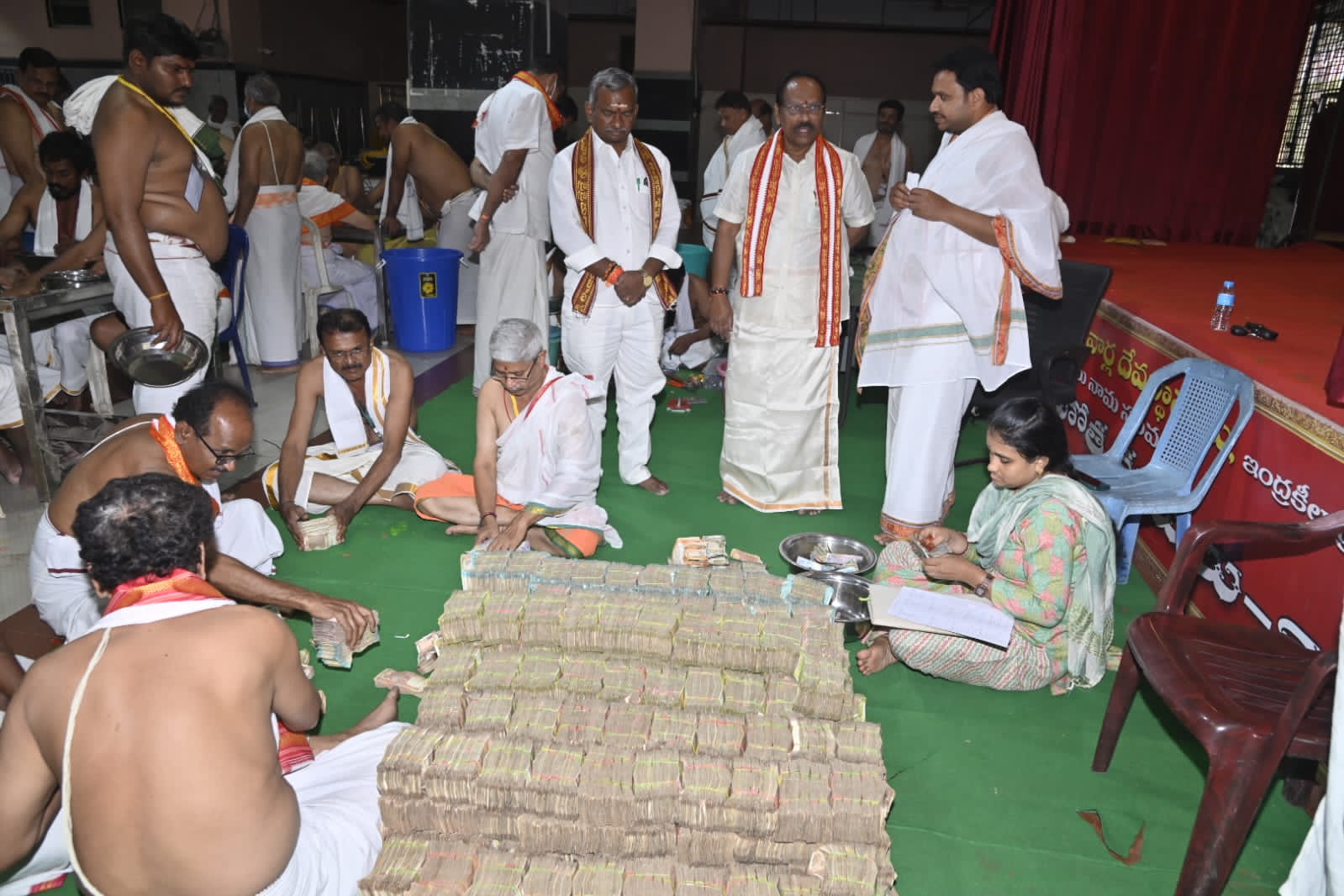 In the Indrakeeladri Sri Durga Malleshwar Swamy Temple in Vijayawada, temple officials and staff counted the offerings made by devotees in the hundi on Wednesday, which had been collected over the past 18 days.