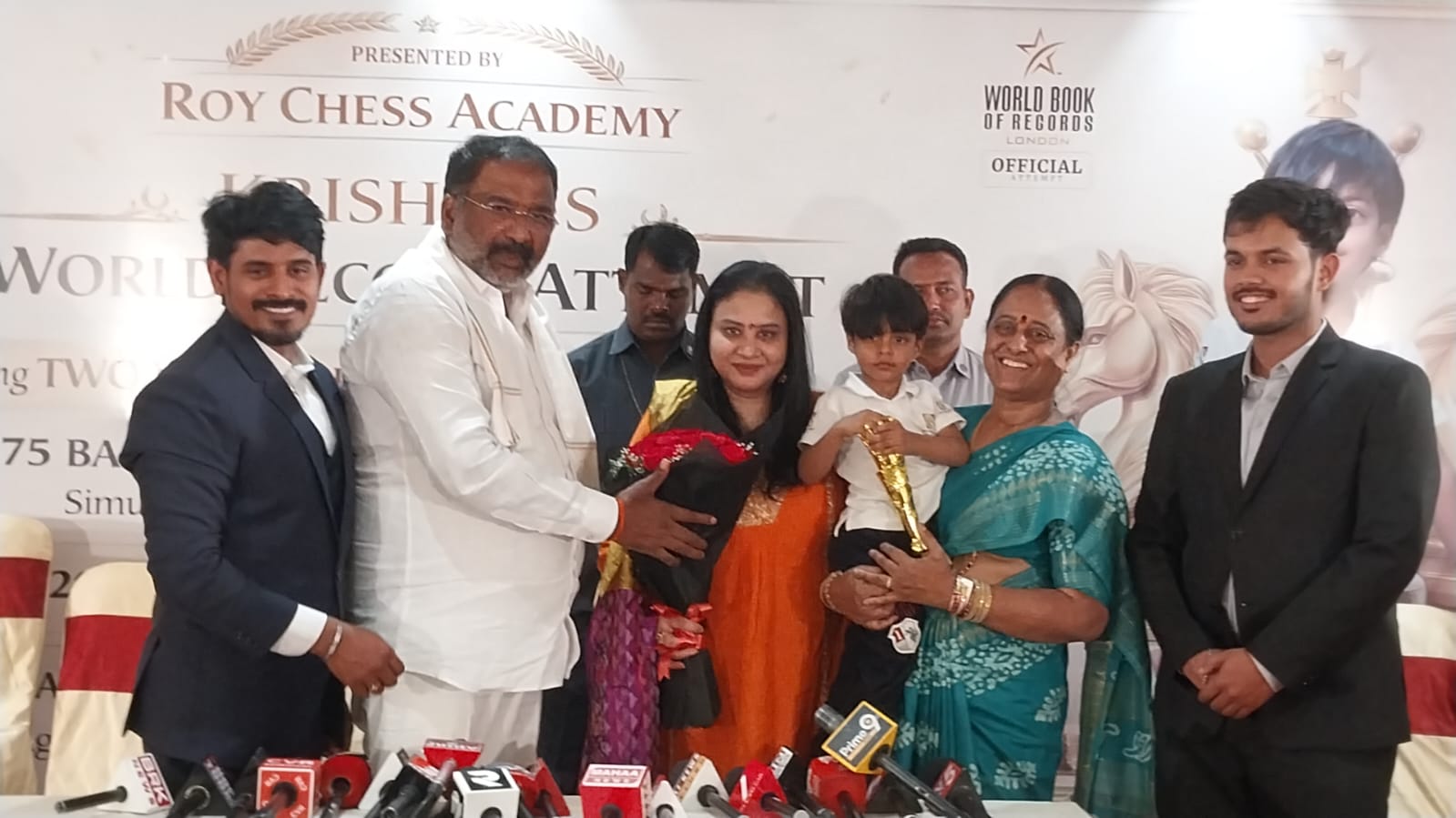 Hyderabad, April 7 (Representative): Minister Vakiti Srihari warmly congratulated child prodigy Shriyansh Murali Krishna Patel for achieving a world-class Guinness record in chess. He described Shriyansh's extraordinary talent at such a young age as a matter of pride for the state of Telangana. The minister noted that it is remarkable for Shriyansh to set a Guinness World Record in chess at just 2 years and 11 months old. He praised Shriyansh for completing 21 checkmates in just 15 minutes, a goal that is typically completed in 30 minutes, as a testament to his talent. The minister commended Shriyansh's play style, stating it reflects the sentiment "Nabhūto Nā Bhaviṣyat" (Neither before nor in the future). He mentioned that such talented individuals serve as an inspiration for the state. With Shriyansh set to receive an award in the British Parliament in June, he extended his early congratulations.