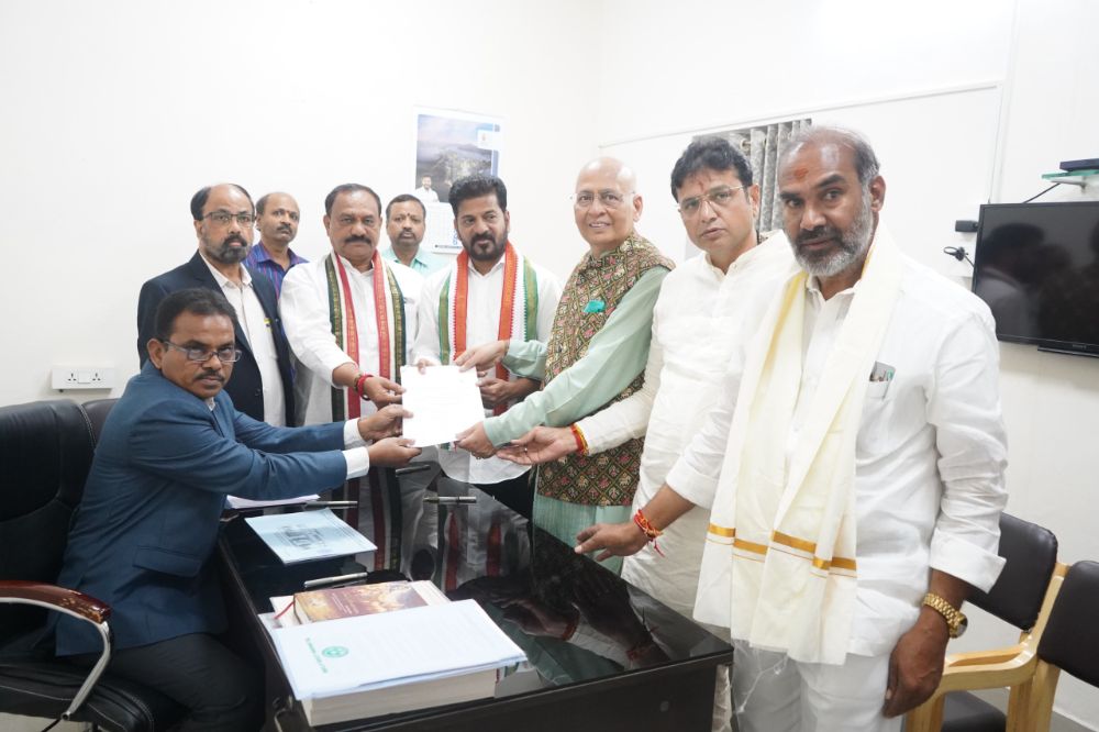 Nominations for the Rajya Sabha from Telangana have been filed by Abhishek Manu Singhvi and V. Narender Reddy on behalf of the Congress party. They submitted their nomination papers to the election officer Upender Reddy at the Assembly office. Singhvi filed three sets of nominations, while V. Narender Reddy submitted four sets. Independent candidate Sai filed his nomination with a single set. On this occasion, Chief Minister Revanth Reddy, ministers, and a large number of MLAs were present.